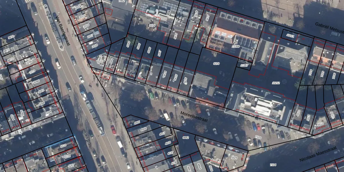 Het perceel waarop Moreelsestraat 15-H staat heeft een oppervlakte van 158 m². Dit is een middelgroot perceel. De perceeloppervlakte wordt geregistreerd door het Kadaster. Gedetailleerde informatie over de maten van dit perceel kunt u vinden in het rapport Kadastrale kaart met maatvoering van Moreelsestraat 15-H.