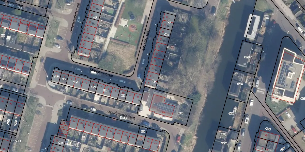 Het perceel waarop Morellenstraat 14 staat heeft een oppervlakte van 433 m². Dit is een groot perceel. De perceeloppervlakte wordt geregistreerd door het Kadaster. Gedetailleerde informatie over de maten van dit perceel kunt u vinden in het rapport Kadastrale kaart met maatvoering van Morellenstraat 14.
