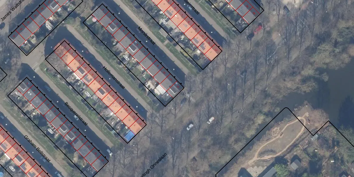 Het perceel waarop Morsestraat 12 staat heeft een oppervlakte van 996 m². Dit is een groot perceel. De perceeloppervlakte wordt geregistreerd door het Kadaster. Gedetailleerde informatie over de maten van dit perceel kunt u vinden in het rapport Kadastrale kaart met maatvoering van Morsestraat 12.