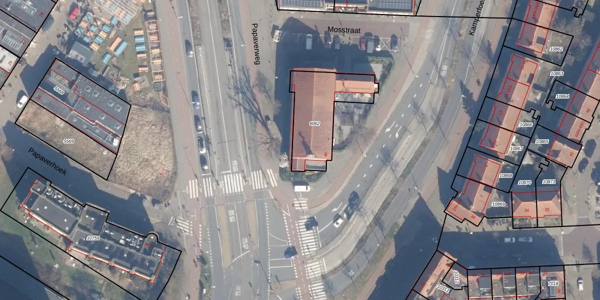 Het perceel waarop Mosplein 40 staat heeft een oppervlakte van 579 m². Dit is een groot perceel. De perceeloppervlakte wordt geregistreerd door het Kadaster. Gedetailleerde informatie over de maten van dit perceel kunt u vinden in het rapport Kadastrale kaart met maatvoering van Mosplein 40.