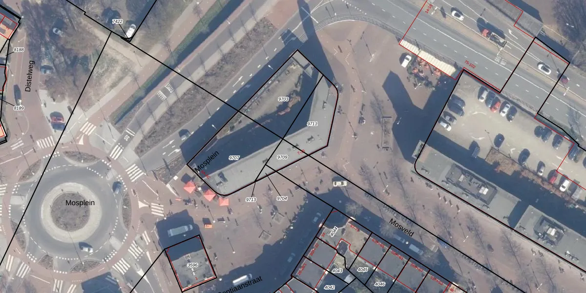 Mosplein 6-G is gelegen op kadastraal perceel ASD07K9709. Deze kadastrale aanduiding is uniek en wordt gebruikt door het Kadaster om eigendomsrechten en andere zakelijke rechten vast te leggen. Het perceel maakt onderdeel uit van de kadastrale gemeente Amsterdam.