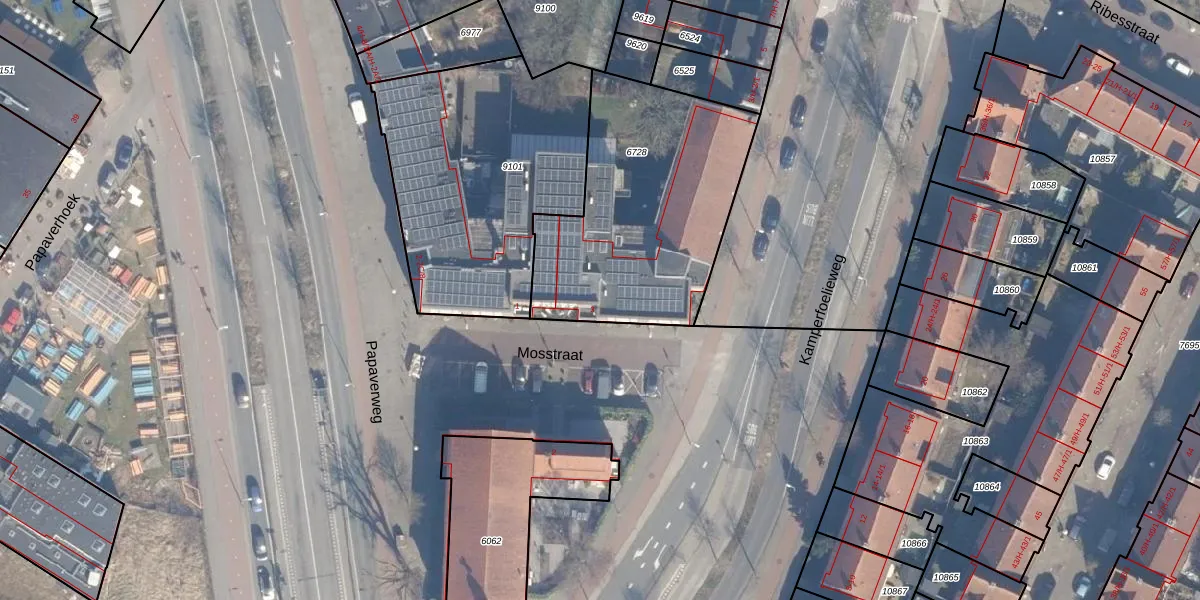 Het perceel waarop Mosstraat 3 staat heeft een oppervlakte van 1096 m². Dit is een zeer groot perceel. De perceeloppervlakte wordt geregistreerd door het Kadaster. Gedetailleerde informatie over de maten van dit perceel kunt u vinden in het rapport Kadastrale kaart met maatvoering van Mosstraat 3.