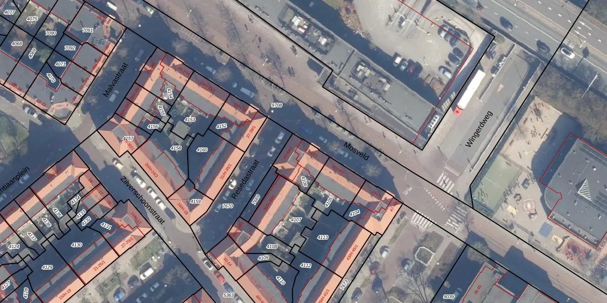 Mosveld 13-H is gelegen op kadastraal perceel ASD07K4106. Deze kadastrale aanduiding is uniek en wordt gebruikt door het Kadaster om eigendomsrechten en andere zakelijke rechten vast te leggen. Het perceel maakt onderdeel uit van de kadastrale gemeente Amsterdam.