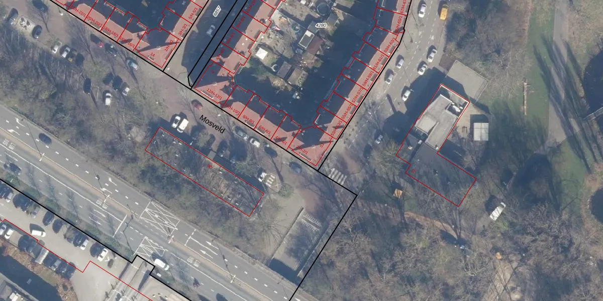 Mosveld 2-H is gelegen op kadastraal perceel ASD07K4280. Deze kadastrale aanduiding is uniek en wordt gebruikt door het Kadaster om eigendomsrechten en andere zakelijke rechten vast te leggen. Het perceel maakt onderdeel uit van de kadastrale gemeente Amsterdam.