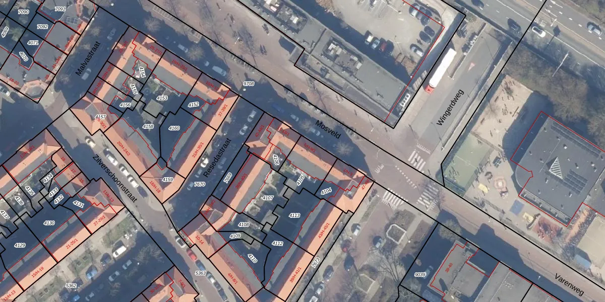 Mosveld 9-1 is gelegen op kadastraal perceel ASD07K4105. Deze kadastrale aanduiding is uniek en wordt gebruikt door het Kadaster om eigendomsrechten en andere zakelijke rechten vast te leggen. Het perceel maakt onderdeel uit van de kadastrale gemeente Amsterdam.