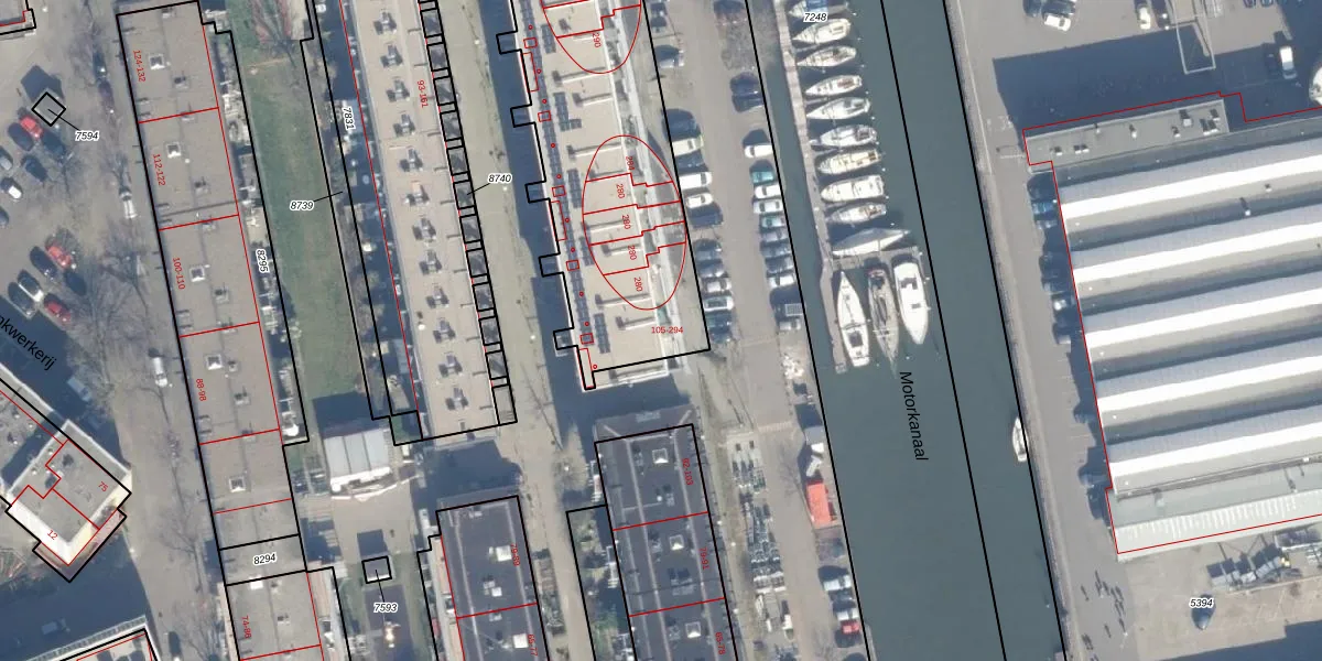 Het perceel waarop Motorwal 106 staat heeft een oppervlakte van 6410 m². Dit is een zeer groot perceel. De perceeloppervlakte wordt geregistreerd door het Kadaster. Gedetailleerde informatie over de maten van dit perceel kunt u vinden in het rapport Kadastrale kaart met maatvoering van Motorwal 106.