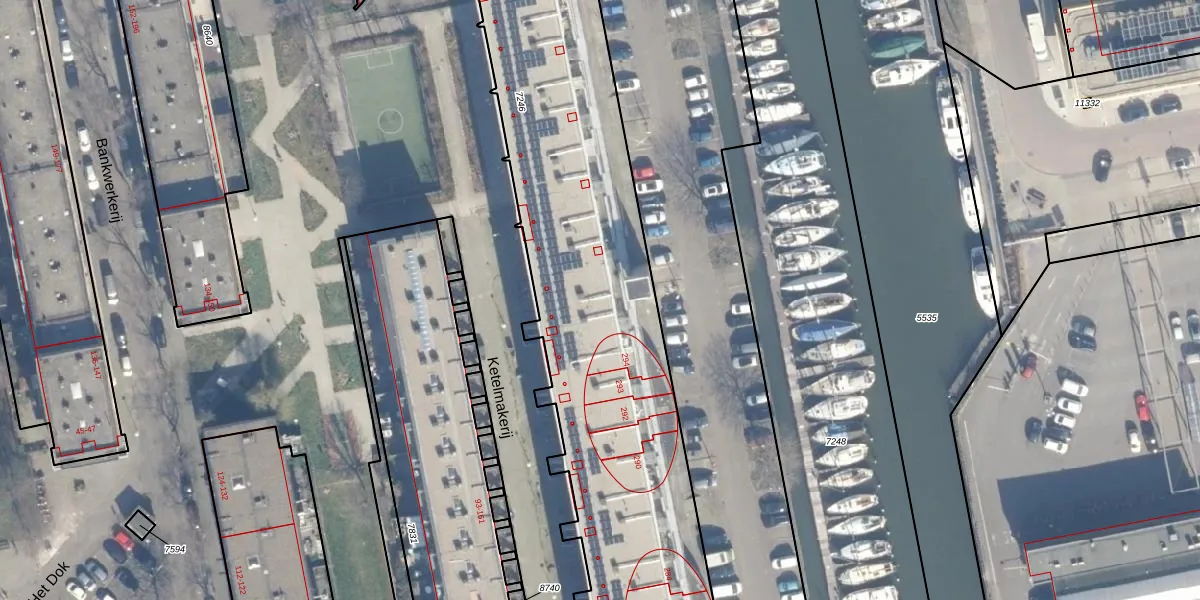 Het perceel waarop het adres ligt is ASD07-K-7246. De afkorting 'ASD07' staat voor kadastrale gemeente Amsterdam. De gemiddelde perceeloppervlakte in de kadastrale gemeente Amsterdam is 3010,05 m². Dit perceel is met zijn 6410 m² dus groter dan gemiddeld. Het grootste perceel in de kadastrale gemeente is 56,2 ha. Het kleinste perceel heeft een oppervlakte van 0 m². Op het perceel liggen in totaal 179 adressen. De laatste wijziging in het de Basisregistratie Kadaster (BRK) was op 24-09-2007.
