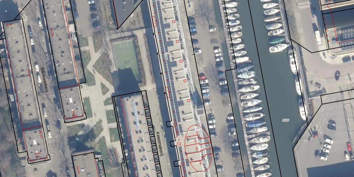 Het perceel waarop het adres ligt is ASD07-K-7246. De afkorting 'ASD07' staat voor kadastrale gemeente Amsterdam. De gemiddelde perceeloppervlakte in de kadastrale gemeente Amsterdam is 3010,05 m². Dit perceel is met zijn 6410 m² dus groter dan gemiddeld. Het grootste perceel in de kadastrale gemeente is 56,2 ha. Het kleinste perceel heeft een oppervlakte van 0 m². Op het perceel zijn 179 adressen aanwezig. De huidige grenzen van het perceel zijn digitaal in de Basisregistratie Kadaster (BRK) geregistreerd op 24-09-2007.