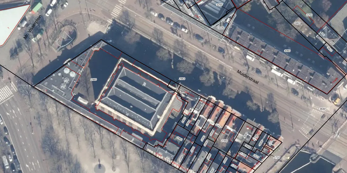 Muiderstraat 2 is gelegen op kadastraal perceel ASD12P2963. Deze kadastrale aanduiding is uniek en wordt gebruikt door het Kadaster om eigendomsrechten en andere zakelijke rechten vast te leggen. Het perceel maakt onderdeel uit van de kadastrale gemeente Amsterdam.
