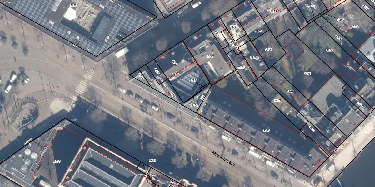 Muiderstraat 9-F is gelegen op kadastraal perceel ASD12P3296. Deze kadastrale aanduiding is uniek en wordt gebruikt door het Kadaster om eigendomsrechten en andere zakelijke rechten vast te leggen. Het perceel maakt onderdeel uit van de kadastrale gemeente Amsterdam.