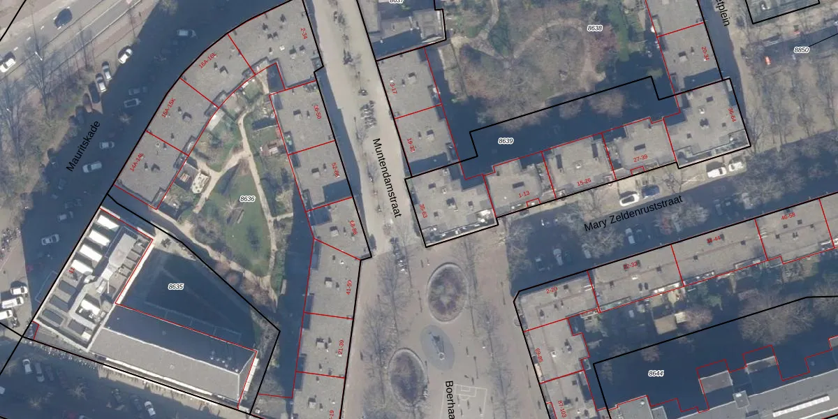 Muntendamstraat 45 is gelegen op kadastraal perceel ASD15S8639. Deze kadastrale aanduiding is uniek en wordt gebruikt door het Kadaster om eigendomsrechten en andere zakelijke rechten vast te leggen. Het perceel maakt onderdeel uit van de kadastrale gemeente Amsterdam.