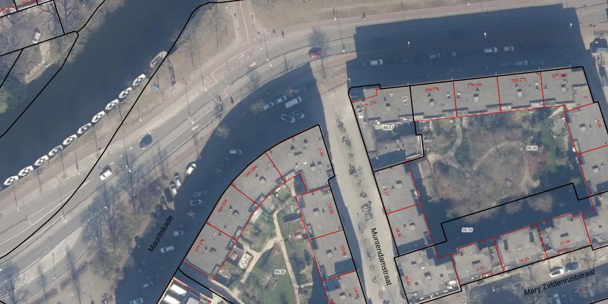 Het adres ligt op het perceel ASD15-S-8636, dat zich in de kadastrale gemeente Amsterdam bevindt. De gemiddelde perceeloppervlakte in de kadastrale gemeente Amsterdam is 537,06 m². Dit perceel is met zijn 3577 m² dus groter dan gemiddeld. De grootste perceeloppervlakte in de kadastrale gemeente is 14,5 ha. De kleinste oppervlakte bedraagt 0 m². Op het perceel liggen in totaal 101 adressen. In de Basisregistratie Kadaster (BRK) werden de grenzen van het perceel geregistreerd op 22-11-2006.