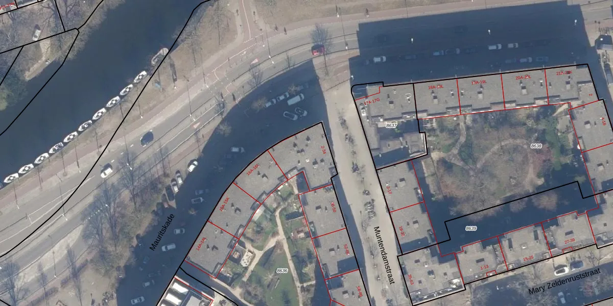 Muntendamstraat 8 is gelegen op kadastraal perceel ASD15S8636. Deze kadastrale aanduiding is uniek en wordt gebruikt door het Kadaster om eigendomsrechten en andere zakelijke rechten vast te leggen. Het perceel maakt onderdeel uit van de kadastrale gemeente Amsterdam.