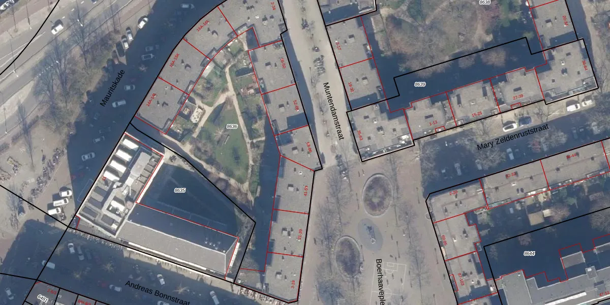 Het adres ligt op het perceel ASD15-S-8636, dat zich in de kadastrale gemeente Amsterdam bevindt. De gemiddelde perceeloppervlakte in de kadastrale gemeente Amsterdam is 537,06 m². Dit perceel is met zijn 3577 m² dus groter dan gemiddeld. De grootste perceeloppervlakte in de kadastrale gemeente is 14,5 ha. De kleinste oppervlakte bedraagt 0 m². Op het perceel liggen in totaal 101 adressen. De huidige grenzen van het perceel zijn digitaal in de Basisregistratie Kadaster (BRK) geregistreerd op 22-11-2006.