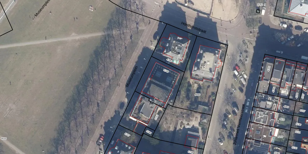 Het perceel waarop Museumplein 5-C staat heeft een oppervlakte van 644 m². Dit is een groot perceel. De perceeloppervlakte wordt geregistreerd door het Kadaster. Gedetailleerde informatie over de maten van dit perceel kunt u vinden in het rapport Kadastrale kaart met maatvoering van Museumplein 5-C.
