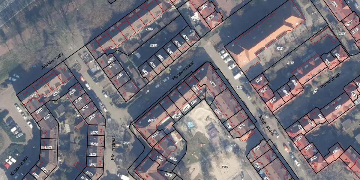 Het perceel waarop Mussenstraat 16 staat heeft een oppervlakte van 87 m². Dit is een klein perceel. De perceeloppervlakte wordt geregistreerd door het Kadaster. Gedetailleerde informatie over de maten van dit perceel kunt u vinden in het rapport Kadastrale kaart met maatvoering van Mussenstraat 16.