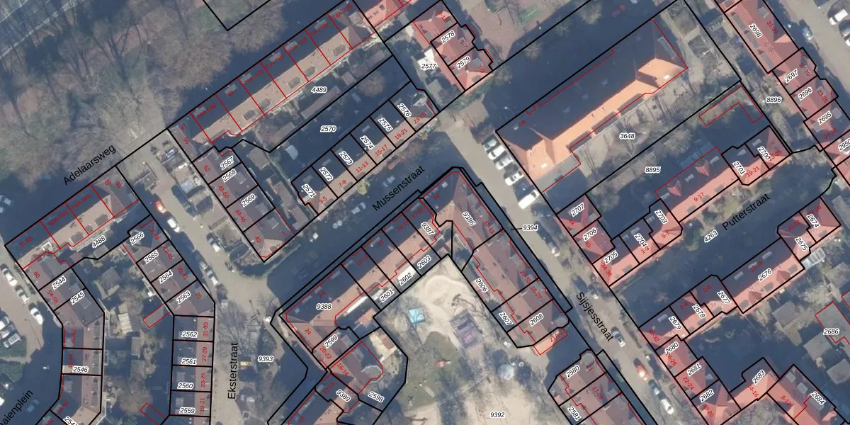 Het perceel waarop Mussenstraat 22 staat heeft een oppervlakte van 85 m². Dit is een klein perceel. De perceeloppervlakte wordt geregistreerd door het Kadaster. Gedetailleerde informatie over de maten van dit perceel kunt u vinden in het rapport Kadastrale kaart met maatvoering van Mussenstraat 22.