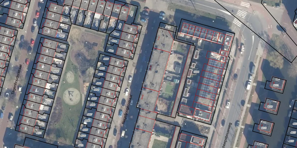Het perceel waarop Nageljongenstraat 21 staat heeft een oppervlakte van 5438 m². Dit is een zeer groot perceel. De perceeloppervlakte wordt geregistreerd door het Kadaster. Gedetailleerde informatie over de maten van dit perceel kunt u vinden in het rapport Kadastrale kaart met maatvoering van Nageljongenstraat 21.