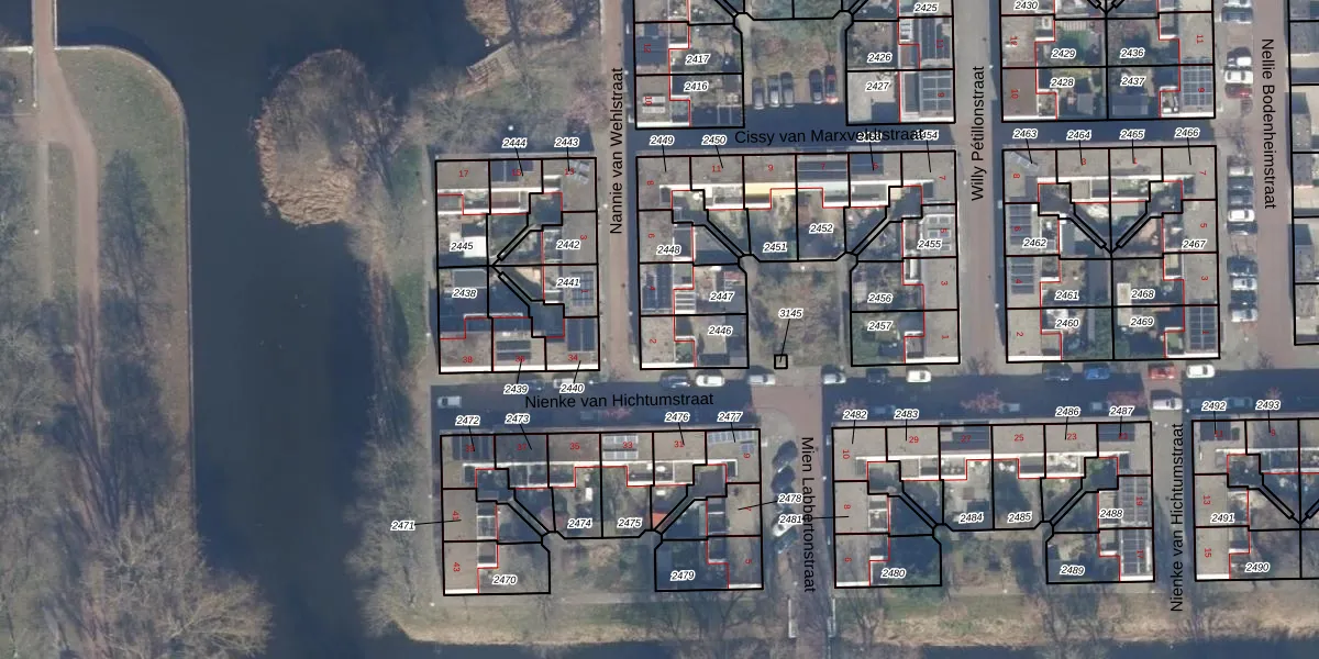 Gebruik de zoekbalk of klik op een perceel voor informatie over de adressen binnen dit perceel.