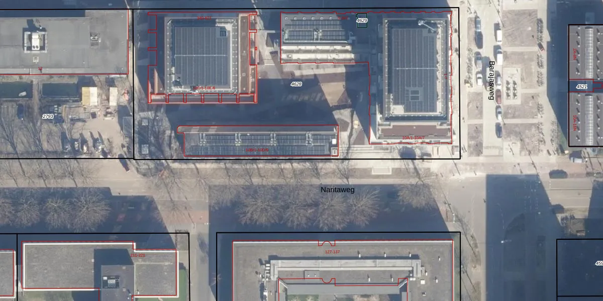Het perceel waarop Naritaweg 10-D-2 staat heeft een oppervlakte van 5370 m². Dit is een zeer groot perceel. De perceeloppervlakte wordt geregistreerd door het Kadaster. Gedetailleerde informatie over de maten van dit perceel kunt u vinden in het rapport Kadastrale kaart met maatvoering van Naritaweg 10-D-2.