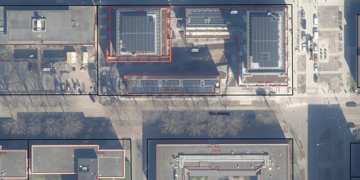 Het perceel waarop Naritaweg 10-D-4 staat heeft een oppervlakte van 5370 m². Dit is een zeer groot perceel. De perceeloppervlakte wordt geregistreerd door het Kadaster. Gedetailleerde informatie over de maten van dit perceel kunt u vinden in het rapport Kadastrale kaart met maatvoering van Naritaweg 10-D-4.