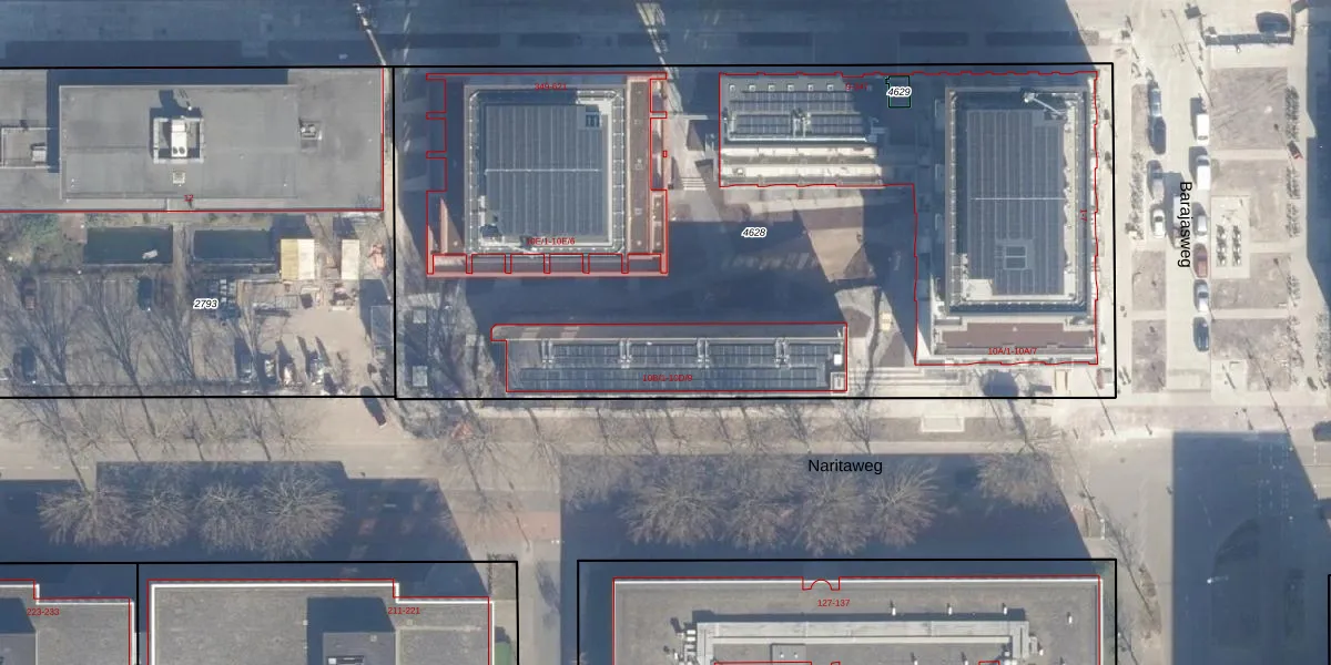 Het perceel waarop Naritaweg 10-D-12 staat heeft een oppervlakte van 5370 m². Dit is een zeer groot perceel. De perceeloppervlakte wordt geregistreerd door het Kadaster. Gedetailleerde informatie over de maten van dit perceel kunt u vinden in het rapport Kadastrale kaart met maatvoering van Naritaweg 10-D-12.