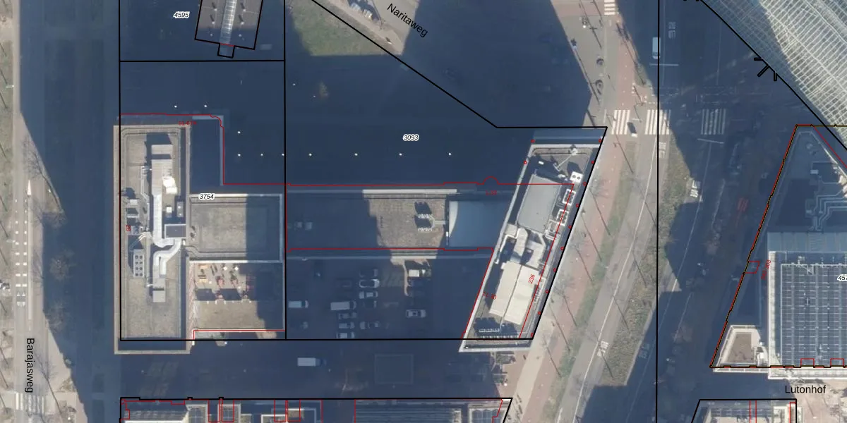 Het perceel waarop Naritaweg 11-F staat heeft een oppervlakte van 4232 m². Dit is een zeer groot perceel. De perceeloppervlakte wordt geregistreerd door het Kadaster. Gedetailleerde informatie over de maten van dit perceel kunt u vinden in het rapport Kadastrale kaart met maatvoering van Naritaweg 11-F.