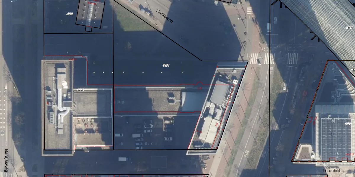 Het perceel waarop Naritaweg 11-T staat heeft een oppervlakte van 4232 m². Dit is een zeer groot perceel. De perceeloppervlakte wordt geregistreerd door het Kadaster. Gedetailleerde informatie over de maten van dit perceel kunt u vinden in het rapport Kadastrale kaart met maatvoering van Naritaweg 11-T.