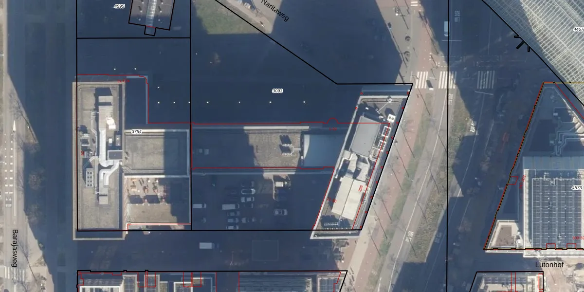 Het perceel waarop Naritaweg 13-E staat heeft een oppervlakte van 4232 m². Dit is een zeer groot perceel. De perceeloppervlakte wordt geregistreerd door het Kadaster. Gedetailleerde informatie over de maten van dit perceel kunt u vinden in het rapport Kadastrale kaart met maatvoering van Naritaweg 13-E.