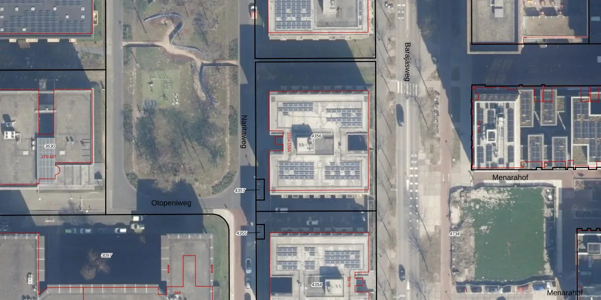 Het perceel waarop Naritaweg 153-V staat heeft een oppervlakte van 1973 m². Dit is een zeer groot perceel. De perceeloppervlakte wordt geregistreerd door het Kadaster. Gedetailleerde informatie over de maten van dit perceel kunt u vinden in het rapport Kadastrale kaart met maatvoering van Naritaweg 153-V.