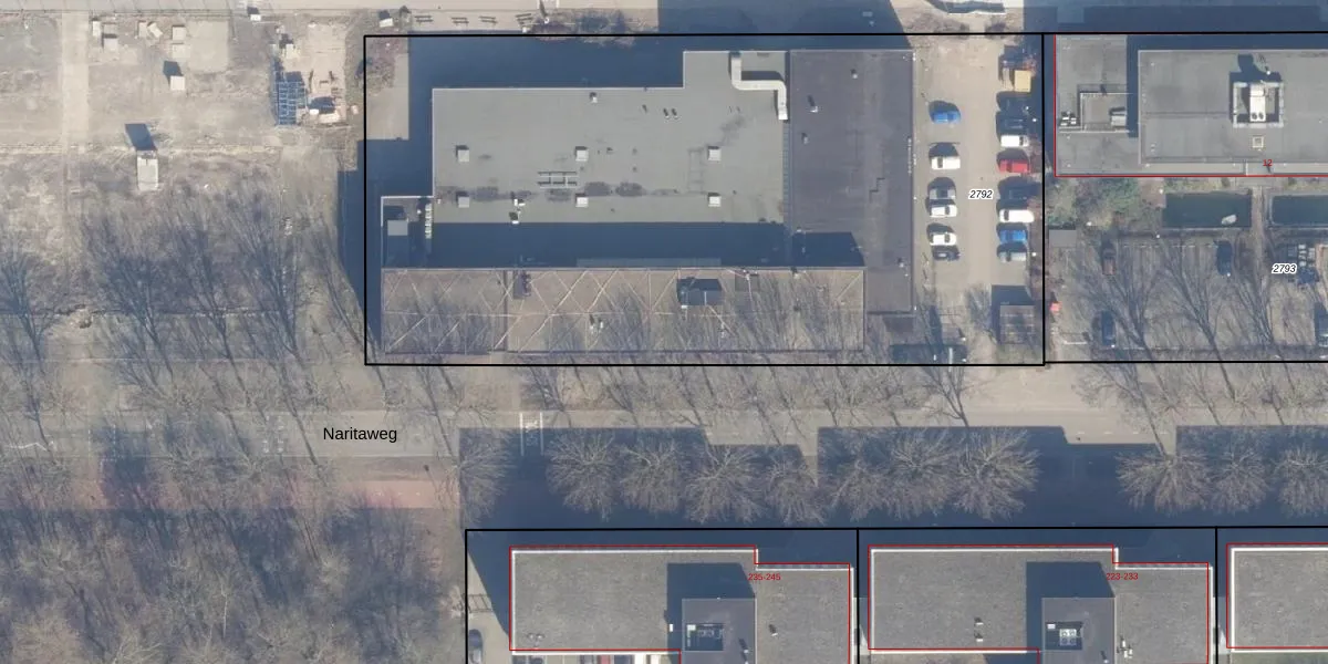Het perceel waarop Naritaweg 16-B-3 staat heeft een oppervlakte van 5095 m². Dit is een zeer groot perceel. De perceeloppervlakte wordt geregistreerd door het Kadaster. Gedetailleerde informatie over de maten van dit perceel kunt u vinden in het rapport Kadastrale kaart met maatvoering van Naritaweg 16-B-3.