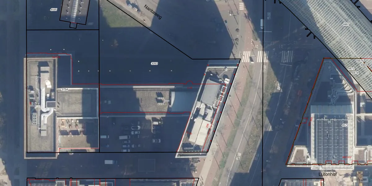 Het perceel waarop Naritaweg 27 staat heeft een oppervlakte van 4232 m². Dit is een zeer groot perceel. De perceeloppervlakte wordt geregistreerd door het Kadaster. Gedetailleerde informatie over de maten van dit perceel kunt u vinden in het rapport Kadastrale kaart met maatvoering van Naritaweg 27.