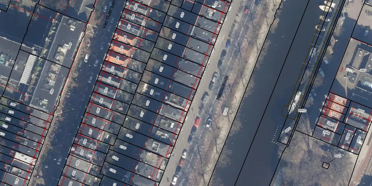 Het perceel waarop Nassaukade 107-2 staat heeft een oppervlakte van 197 m². Dit is een middelgroot perceel. De perceeloppervlakte wordt geregistreerd door het Kadaster. Gedetailleerde informatie over de maten van dit perceel kunt u vinden in het rapport Kadastrale kaart met maatvoering van Nassaukade 107-2.