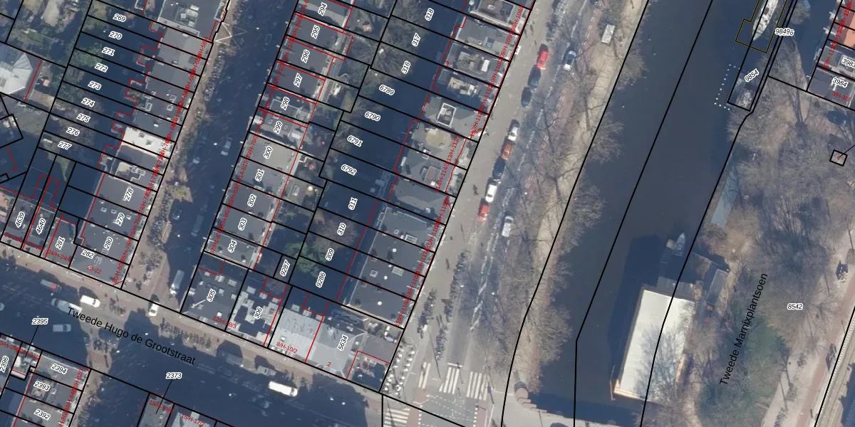 Het adres is gelegen op perceel 6792 in de sectie Q en de kadastrale gemeente Amsterdam. De kadastrale aanduiding is aldus ASD13-Q-6792. De gemiddelde perceelgrootte in Amsterdam is 393,94 m². Dit perceel is kleiner: de perceeloppervlakte bedraagt 226 m². Het kleinste perceel in de kadastrale gemeente is 1 m² groot. De grootste perceeloppervlakte is 6,2 ha. Op het perceel liggen in totaal 4 adressen. In de Basisregistratie Kadaster (BRK) werden de grenzen van het perceel geregistreerd op 23-01-2007.