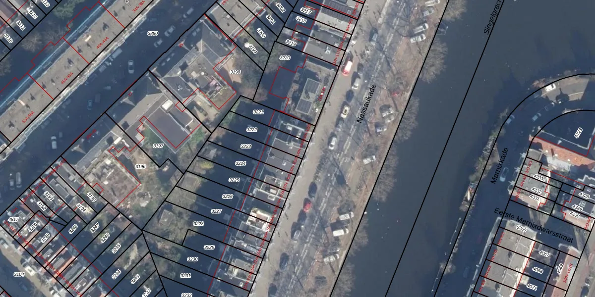 Nassaukade 14-3 is gelegen op kadastraal perceel ASD21Y3222. Deze kadastrale aanduiding is uniek en wordt gebruikt door het Kadaster om eigendomsrechten en andere zakelijke rechten vast te leggen. Het perceel maakt onderdeel uit van de kadastrale gemeente Amsterdam.