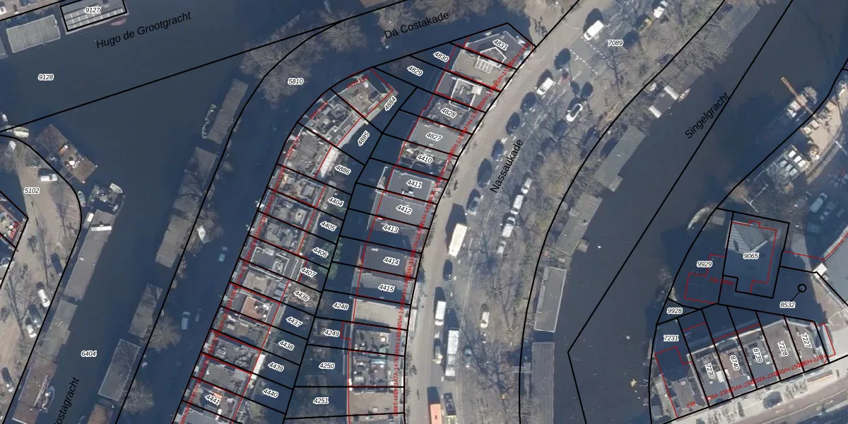 Nassaukade 141-H is gelegen op kadastraal perceel ASD13Q4412. Deze kadastrale aanduiding is uniek en wordt gebruikt door het Kadaster om eigendomsrechten en andere zakelijke rechten vast te leggen. Het perceel maakt onderdeel uit van de kadastrale gemeente Amsterdam.