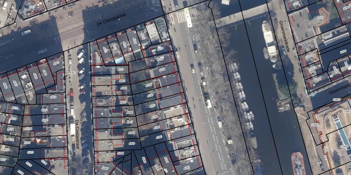 Nassaukade 157-1 is gelegen op kadastraal perceel ASD13Q4256. Deze kadastrale aanduiding is uniek en wordt gebruikt door het Kadaster om eigendomsrechten en andere zakelijke rechten vast te leggen. Het perceel maakt onderdeel uit van de kadastrale gemeente Amsterdam.