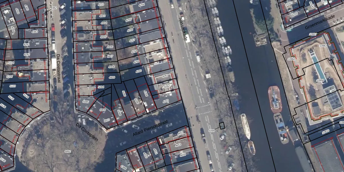 Nassaukade 163-2 is gelegen op kadastraal perceel ASD13Q4262. Deze kadastrale aanduiding is uniek en wordt gebruikt door het Kadaster om eigendomsrechten en andere zakelijke rechten vast te leggen. Het perceel maakt onderdeel uit van de kadastrale gemeente Amsterdam.