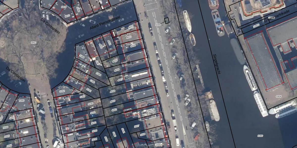 Het perceel waarop het adres ligt is ASD13-Q-4657. De afkorting 'ASD13' staat voor kadastrale gemeente Amsterdam. Het perceel is kleiner dan gemiddeld in Amsterdam. Het perceel is 183 m² groot, terwijl het gemiddelde ligt op 393,94 m². De grootste perceeloppervlakte in de kadastrale gemeente is 6,2 ha. De kleinste oppervlakte bedraagt 1 m². Er zijn 5 adressen aanwezig op het perceel. De huidige grenzen van het perceel zijn digitaal in de Basisregistratie Kadaster (BRK) geregistreerd op 23-11-2006.