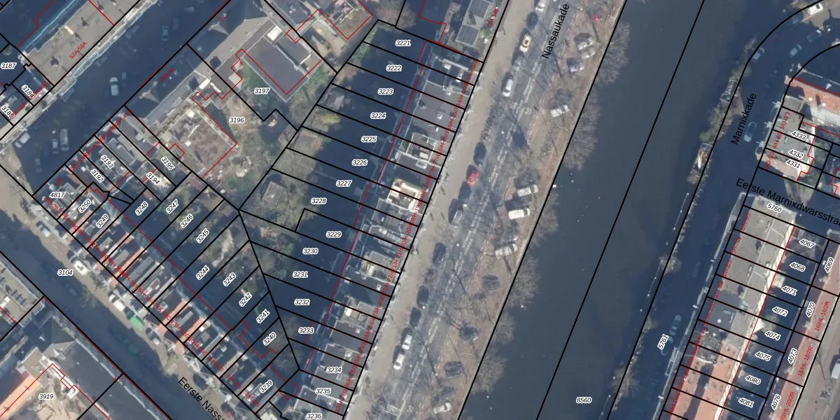 Nassaukade 19-2V is gelegen op kadastraal perceel ASD21Y3227. Deze kadastrale aanduiding is uniek en wordt gebruikt door het Kadaster om eigendomsrechten en andere zakelijke rechten vast te leggen. Het perceel maakt onderdeel uit van de kadastrale gemeente Amsterdam.