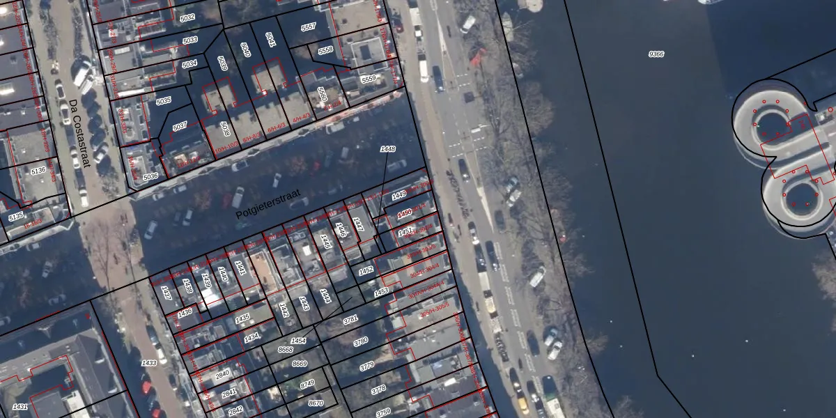 Het adres is gelegen op perceel 1450 in de sectie Q en de kadastrale gemeente Amsterdam. De kadastrale aanduiding is aldus ASD13-Q-1450. Het perceel is 79 m² groot. Dat is kleiner dan de gemiddelde perceeloppervlakte in Amsterdam, dat op 394,07 m² ligt. Het grootste perceel in de kadastrale gemeente is 6,2 ha. Het kleinste perceel heeft een oppervlakte van 1 m². Op het perceel zijn 5 adressen aanwezig. In de Basisregistratie Kadaster (BRK) werden de grenzen van het perceel geregistreerd op 28-11-1997.