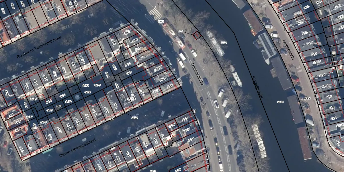 Het perceel waarop Nassaukade 369-H staat heeft een oppervlakte van 65 m². Dit is een klein perceel. De perceeloppervlakte wordt geregistreerd door het Kadaster. Gedetailleerde informatie over de maten van dit perceel kunt u vinden in het rapport Kadastrale kaart met maatvoering van Nassaukade 369-H.