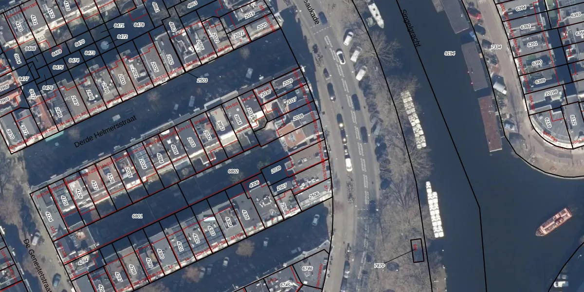 Het perceel waarop het adres ligt is ASD13-Q-6802. De afkorting 'ASD13' staat voor kadastrale gemeente Amsterdam. Het perceel is met 434 m² relatief groot. Het gemiddelde ligt in de kadastrale gemeente Amsterdam op 393,94 m². De grootste perceeloppervlakte in de kadastrale gemeente is 6,2 ha. De kleinste oppervlakte bedraagt 1 m². Op het perceel liggen in totaal 19 adressen. De huidige grenzen van het perceel zijn digitaal in de Basisregistratie Kadaster (BRK) geregistreerd op 03-11-2006.