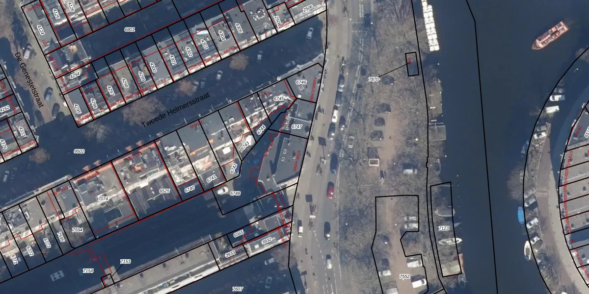 Het adres is gelegen op perceel 6748 in de sectie Q en de kadastrale gemeente Amsterdam. De kadastrale aanduiding is aldus ASD13-Q-6748. De oppervlakte van het perceel is 481 m². Dat is groter dan gemiddeld in Amsterdam, waar de gemiddelde perceeloppervlakte op 393,94 m² ligt. Het grootste perceel in de kadastrale gemeente is 6,2 ha. Het kleinste perceel heeft een oppervlakte van 1 m². Op het perceel liggen in totaal 8 adressen. De huidige grenzen van het perceel zijn digitaal in de Basisregistratie Kadaster (BRK) geregistreerd op 03-11-2006.