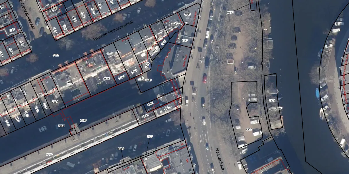 Het perceel waarop Nassaukade 382-2 staat heeft een oppervlakte van 1882 m². Dit is een zeer groot perceel. De perceeloppervlakte wordt geregistreerd door het Kadaster. Gedetailleerde informatie over de maten van dit perceel kunt u vinden in het rapport Kadastrale kaart met maatvoering van Nassaukade 382-2.