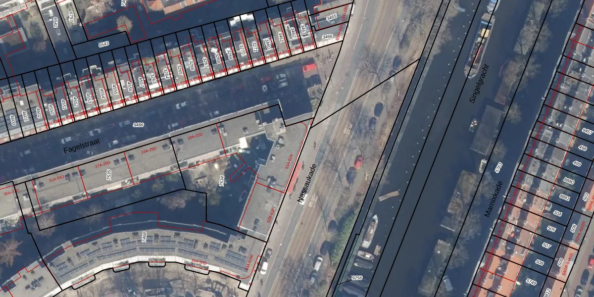 Nassaukade 61-A is gelegen op kadastraal perceel ASD13Q7534. Deze kadastrale aanduiding is uniek en wordt gebruikt door het Kadaster om eigendomsrechten en andere zakelijke rechten vast te leggen. Het perceel maakt onderdeel uit van de kadastrale gemeente Amsterdam.