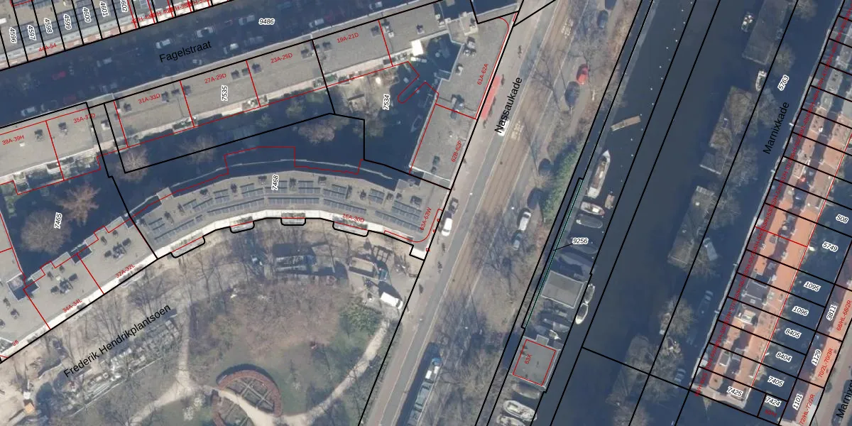 Nassaukade 63-M is gelegen op kadastraal perceel ASD13Q7468. Deze kadastrale aanduiding is uniek en wordt gebruikt door het Kadaster om eigendomsrechten en andere zakelijke rechten vast te leggen. Het perceel maakt onderdeel uit van de kadastrale gemeente Amsterdam.