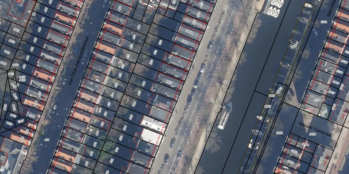Het adres is gelegen op perceel 6447 in de sectie Q en de kadastrale gemeente Amsterdam. De kadastrale aanduiding is aldus ASD13-Q-6447. De gemiddelde perceelgrootte in Amsterdam is 394,07 m². Dit perceel is kleiner: de perceeloppervlakte bedraagt 184 m². Het grootste perceel in de kadastrale gemeente is 6,2 ha. Het kleinste perceel heeft een oppervlakte van 1 m². Op het perceel zijn 4 adressen aanwezig. De huidige grenzen van het perceel zijn digitaal in de Basisregistratie Kadaster (BRK) geregistreerd op 23-01-2007.
