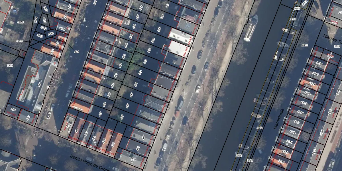 Het adres is gelegen op perceel 501 in de sectie Q en de kadastrale gemeente Amsterdam. De kadastrale aanduiding is aldus ASD13-Q-501. De gemiddelde perceelgrootte in Amsterdam is 392,9 m². Dit perceel is kleiner: de perceeloppervlakte bedraagt 210 m². Het grootste perceel in de kadastrale gemeente is 4,8 ha. Het kleinste perceel heeft een oppervlakte van 1 m². Er zijn 5 adressen aanwezig op het perceel. De huidige grenzen van het perceel zijn digitaal in de Basisregistratie Kadaster (BRK) geregistreerd op 23-01-2007.