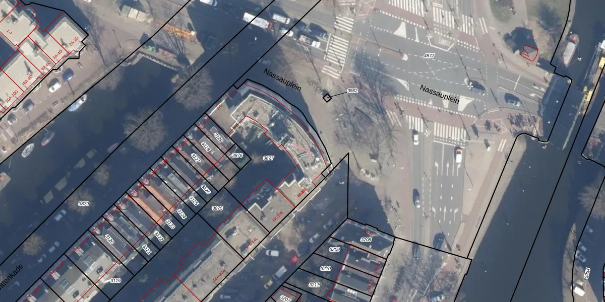 Nassauplein 33 is gelegen op kadastraal perceel ASD21Y3877. Deze kadastrale aanduiding is uniek en wordt gebruikt door het Kadaster om eigendomsrechten en andere zakelijke rechten vast te leggen. Het perceel maakt onderdeel uit van de kadastrale gemeente Amsterdam.